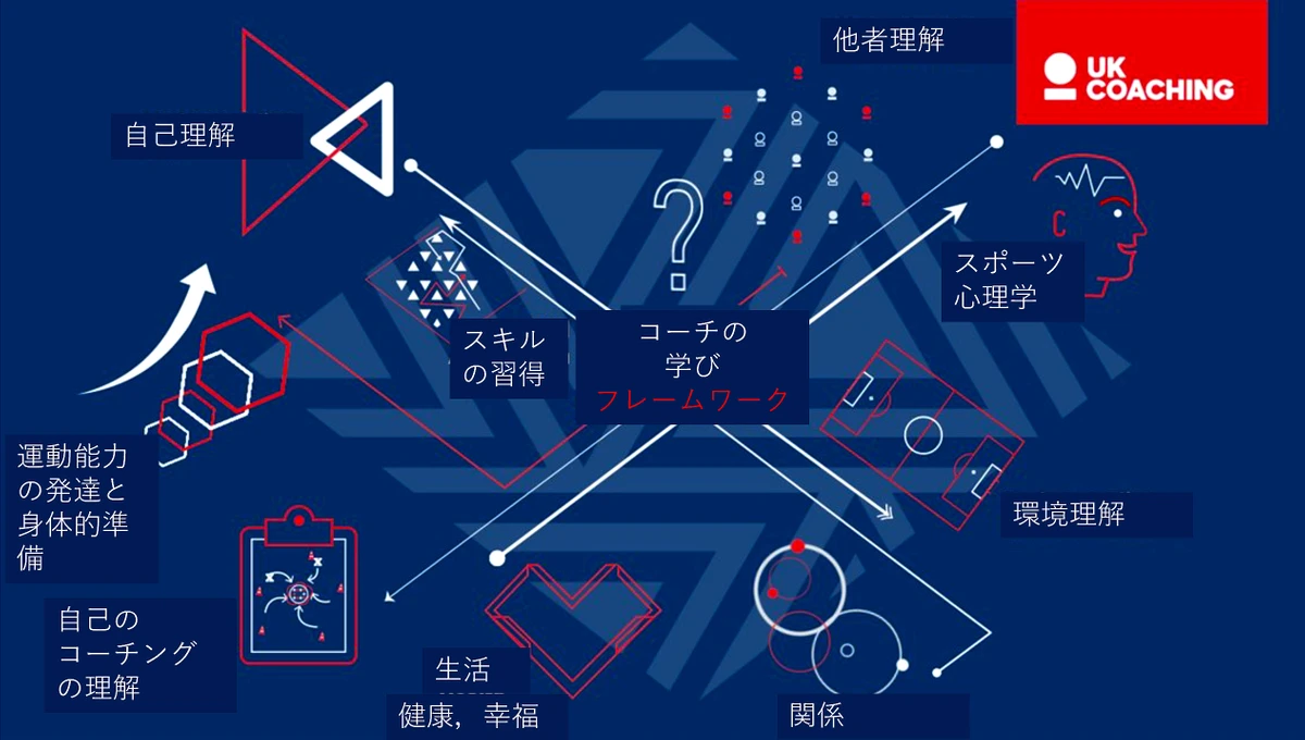 これらを受けて、UKCoachingは、コーチの内なる学びのフレームワークを2022年に策定した。長期的で人を中心に焦点を当てた。ニュージーランドのAthletes-centered(2010)から日本のPlayers-centered(2019)は楽しむためのスポーツも包含し,さらにイギリスのPerson-centeredは学校や草の根レベル、コーチまでも含む概念へと深化・広範化していることが伺われる。図3のようなテーマがフレームワークとして設定された。また、ヘッドコーチのためのリーダーシップやマネジメントを探求するLeading to Perform 、メダル獲得に近いトップコーチを対象としたCoachingin High-Performance Sport (CiHPS)などのプログラムも用意された。